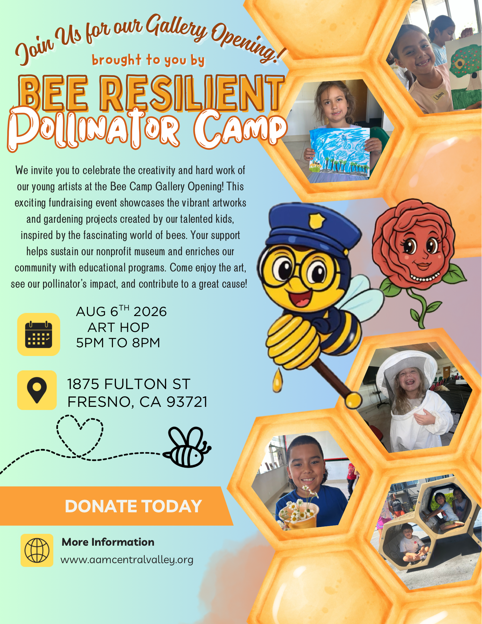 The African American Historical & Cultural Museum (AAHCM) of the San Joaquin Valley proudly presents “Bee Resilient Pollinator Camp uses art as a tool for learning, expression, and environmental awareness. Through hands-on art projects and interactive activities, children explore the role of bees and pollinators while building creativity and confidence.